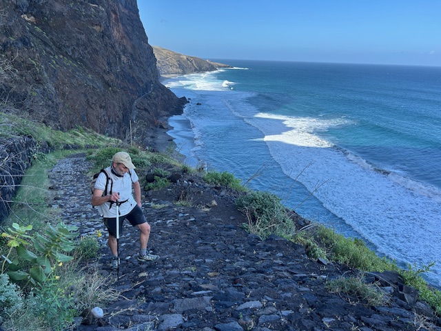 On allait déjà pas vite, mais alors là 😱. J’ai fait des vidéos, je ne sais pas si vous vous rendrez compte du défi! La première c’est une descente, j’y vais vraiment très doucement pour ne pas bousiller genou ou cheville sur les cailloux. Bien sûr ce soir assez stable, il ne me faut pas grand chose pour me faire une entorse, alors prudence. Surtout qu’il n’y a aucun accès en voiture sur les 11km. Le chemin est la falaise eh seuls les piétons peuvent passer, les villages qu’on traversent ne sont pas accessibles par voiture.